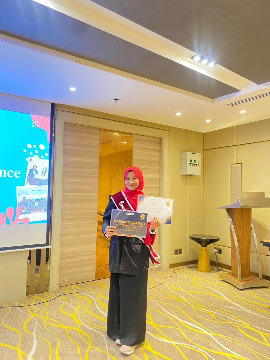 “Saat di Malaysia saya meraih “Favorite Delegate Internasional Volunteer”. Ada Piagam Penghargaan, Sertifikat internasional, dan Selempang Favorite Delegate,” kenangnya.